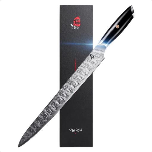 πͺA slicing knife has a long, narrow blade that tapers to a sharp point. Its narrow width means that it produces less drag as it cuts through food, allowing it to create cleaner, more uniform slices. Also, the hollow grounds could keep meat from adhering to the knife.
